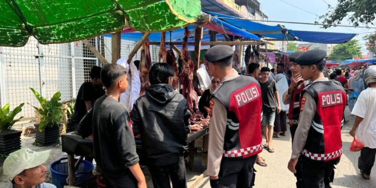 Lhokseumawe – Menjelang Hari Raya Idul Adha 1446 H, Polres Lhokseumawe melalui personel Satsamapta meningkatkan patroli dan pengamanan di pasar tradisional, khususnya lokasi penjualan daging meugang, Kamis (5/6/2025).