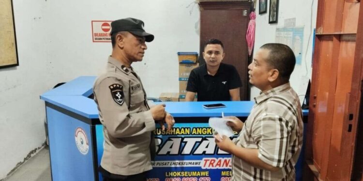 Lhokseumawe – Personel Polsek Banda Sakti melaksanakan patroli dialogis di Terminal Mobil Penumpang di Jalan Pase, Kecamatan Banda Sakti, Kota Lhokseumawe, Kamis (27/3/2025) pagi. Kegiatan ini bertujuan untuk mencegah aksi premanisme serta memastikan keamanan dan ketertiban masyarakat (kamtibmas) di lingkungan terminal.