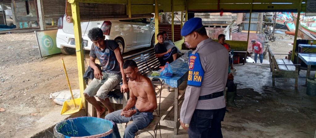 LHOKSEUMAWE, Satuan Polisi Air (Sat Pol Air) Polres Lhokseumawe Polda Aceh, melaksanakan Patroli Dialogis memantau Situasi di seputaran TPI dan Pasar ikan di Desa Pusong Lama guna meminalisir Premanisme terjadinya Guantibmas Wilayah tempat pendaratan ikan dan Pasar Ikan. Kota Lhokseumawe, Sabtu, 12/10/2024.pagi.
