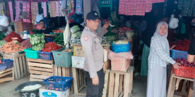 LHOKSEUMAWE – Dua personel Polsek Muara Batu, Polres Lhokseumawe turun ke pasar tradisional, Kamis (30/3/2023), kegiatan ini untuk mengecek ketersediaan sembako di pasaran selama bulan suci Ramadhan.
