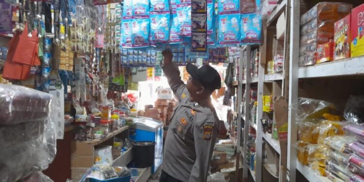 LHOKSEUMAWE – Personel Polsek Kuta Makmur mendatangi pedagang kelontong di pasar Keude Krueng Manyang, Kecamatan Kuta Makmur, Aceh Utara, wilayah hukum Polres Lhokseumawe, Kamis (23/2/2023).
