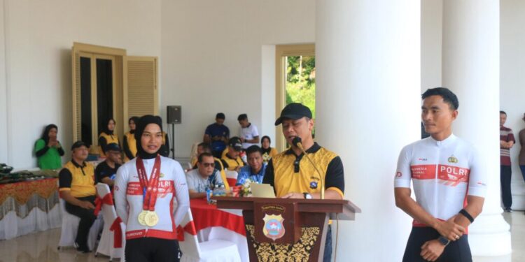 Kapolda Sumbar Irjen. Pol. Gatot Tri Suryanta menyampaikan dalam sambutannya menyampaikan rasa bangga dan apresiasi setinggi-tingginya kepada dua atlet berprestasi dari Polda Sumbar.
