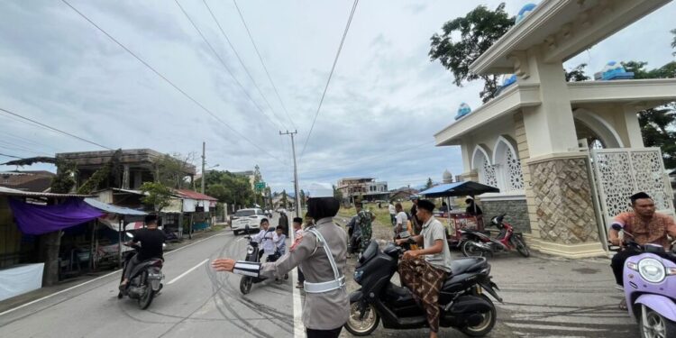 Lanjutnya, Pengamanan yang dilakukan meliputi pengaturan lalu lintas di sekitar masjid serta pemantauan terhadap aktivitas yang mencurigakan. Polwan juga memberikan himbauan kepada masyarakat agar selalu waspada terhadap barang bawaan mereka, guna menghindari tindak kejahatan seperti pencurian atau kehilangan barang selama ibadah berlangsung.
