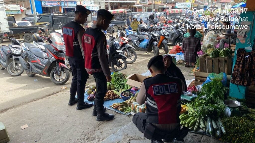 LHOKSEUMAWE, – Sat Samapta Perintis, Polres Lhokseumawe Polda Aceh meningkatan patroli di berbagai pusat perekonomian, pasar pembelajaaan wilayah kota untuk menciptakan rasa aman bagi pedagang dan pembeli untuk situasi kondusif dan mencegah potensi gangguan keamanan. Langkah ini diambil sebagai respons terhadap mencegah terjadinya guantibmas di Wilayah Kota Lhokseumawe, Sabtu 12/10/-2024 pagi.