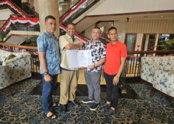 Banda Aceh – Sekretaris Jenderal Dewan Pimpinan Pusat Partai Nanggroe Aceh (PNA), Miswar Fuady, menyerahkan Surat Keputusan (SK) rekomendasi kepada...