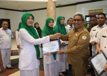 ACEH UTARA — Pj Bupati Aceh Utara Dr. Drs. Mahyuzar, M.Si memberikan penghargaan kepada 20 tenaga kesehatan atau (nakes) pada...