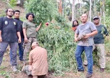 LHOKSUKON - Sat Res Narkoba Polres Aceh Utara kembali memusnahkan ribuan batang tanaman ganja di ladang seluas 1 hektar di...