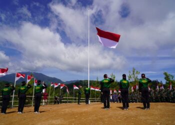 ACEH UTARA - Jajaran Kodim 0103/ Aceh Utara, Korem 011/ Lilawangsa, melaksanakan pengibaran bendera Merah Putih sepanjang 17 Kilometer di...