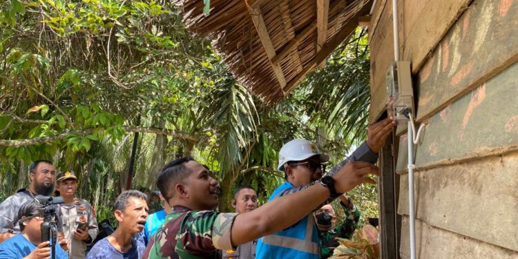 ACEH UTARA – Guna meringankan beban, bagi warga kurang mampu, Kodim 0103/Aut, Bersama PLN UP3 Lhokseumawe, bantu pasang listrik secara gratis untuk dua unit rumah warga, yang berada di kawasan Cot Girek, Aceh Utara (31/07/2023).