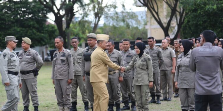 Lhokseumawe – Pj. Walikota Lhokseumawe Dr. Drs Imran M.Si, MA.Cd mengapresiasi kinerja yang telah ditunjukkan oleh Satuan Polisi Pamong Praja dan Wilayatuh Hisbah (Satpol PP dan WH) Kota Lhokseumawe dalam melaksanakan ketertiban umum di Kota Lhokseumawe. Hal tersebut disampaikan Imran saat memberikan amanat kepada ribuan pegawai negeri sipil pada apel pagi di Lapangan Hiraq, Senin (30/1/2023).