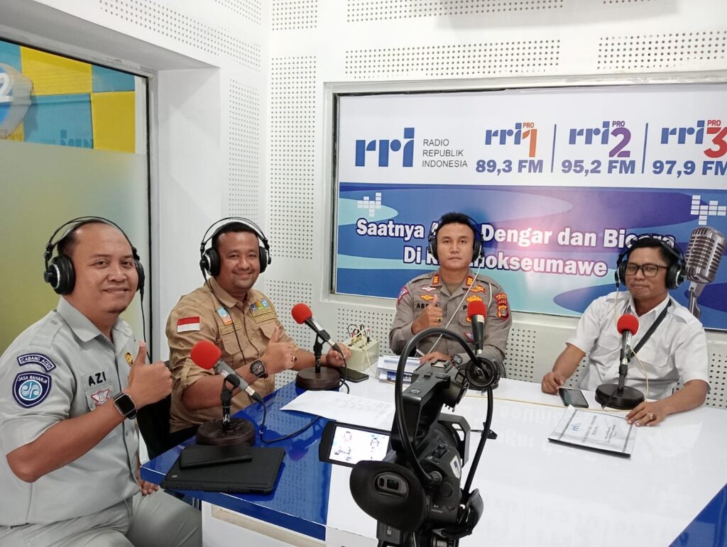 Dialog Interaktif tersebut juga menghadirkan perwakilan dari Ka. UPTD V BPKA/SAMSAT Kota Lhokseumawe, Chaidir, S. E., M. M., dan Kepala Jasa Raharja Kota Lhokseumawe, Azi Suzi Wijaya, S. T. yabg di pandu oleh presenter RRI Kota Lhokseumawe.