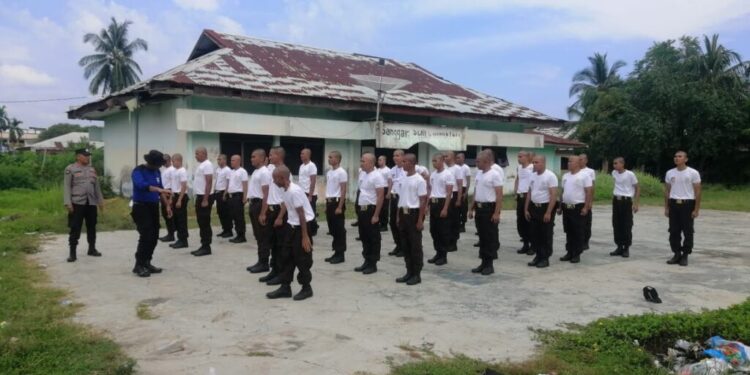 Diksar Satpam Gada Pratama, Personel Binmas Polres Lhokseumawe Beri Pelatihan Baris Berbaris