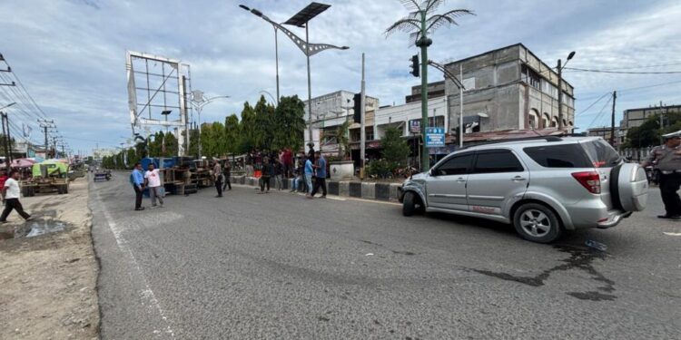 ACEH UTARA – Satu unit truk tangki milik PDAM dengan nomor polisi BL 8154 XA terbalik di perempatan jalan Kota Lhoksukon, Kabupaten Aceh Utara, Rabu (9/5/2025), sekitar pukul 09.00 WIB. Truk tersebut terguling setelah dihantam mobil Toyota Rush BL 1760 ZT dari samping. Tidak ada korban jiwa dalam kejadian itu.
