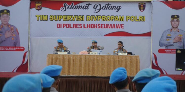 Lhokseumawe – Divisi Profesi dan Pengamanan (Divpropam) Polri melaksanakan kegiatan Supervisi Kewilayahan Fungsi Propam Tahun Anggaran 2025 di jajaran kewilayahan Polda Aceh. Kegiatan ini berlangsung di Aula Wira Satya Polres Lhokseumawe, Kamis (8/5/2025) siang.