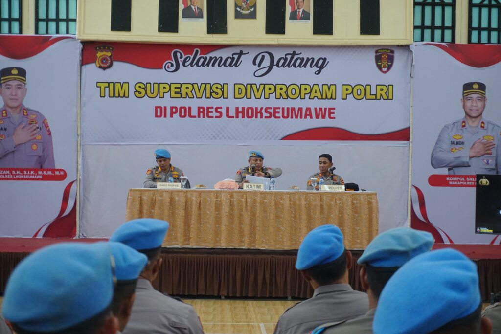 Lhokseumawe – Divisi Profesi dan Pengamanan (Divpropam) Polri melaksanakan kegiatan Supervisi Kewilayahan Fungsi Propam Tahun Anggaran 2025 di jajaran kewilayahan Polda Aceh. Kegiatan ini berlangsung di Aula Wira Satya Polres Lhokseumawe, Kamis (8/5/2025) siang.