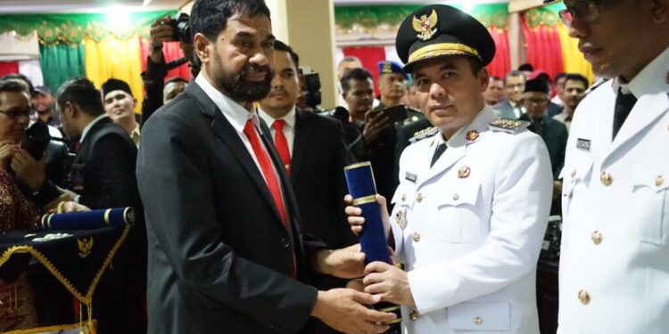 LHOKSEUMAWE – Pelantikan Wali Kota dan Wakil Wali Kota Lhokseumawe periode 2025-2030 berlangsung khidmat dalam rapat paripurna DPRK Lhokseumawe di Gedung DPRK, Senin (17/02/2025). Acara ini dipimpin oleh Ketua DPRK Lhokseumawe, Faisal, didampingi dua Wakil Ketua, serta dihadiri oleh Gubernur Aceh, Muzakir Manaf, yang bertindak sebagai pejabat Pelantikan.