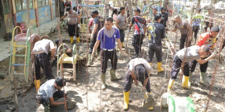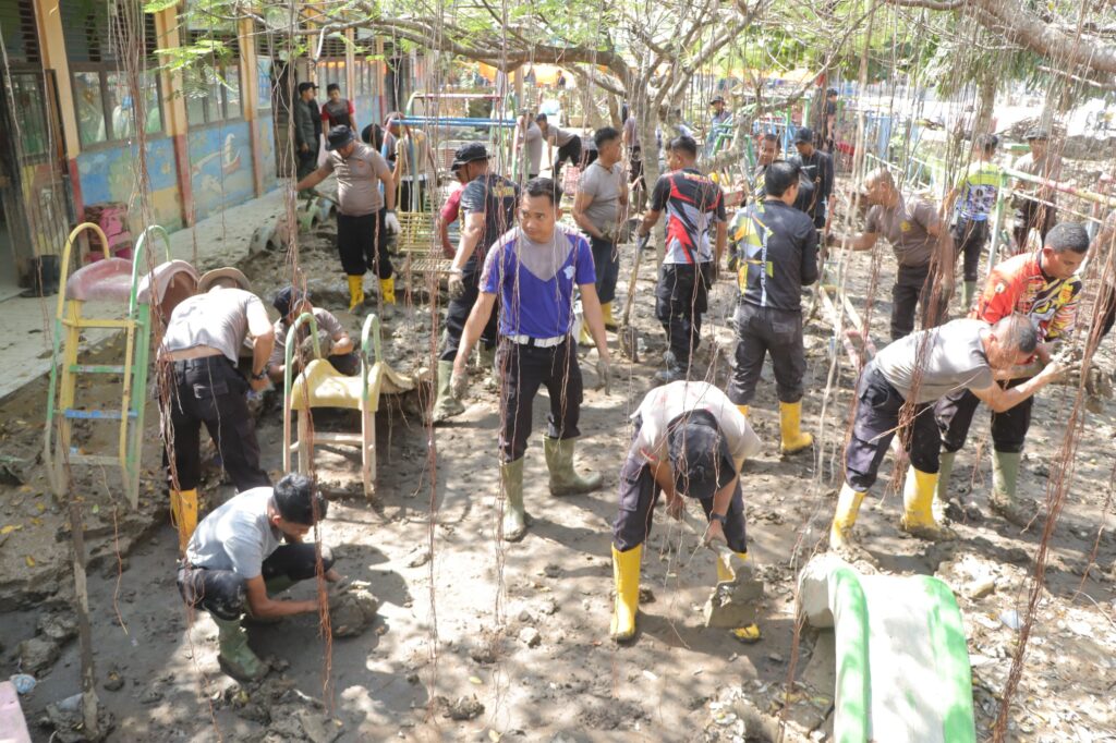 “Sekolah adalah harapan masa depan anak-anak kita. Karena itu, meskipun harus bekerja keras dan berjibaku dengan lumpur selama dua hari, kami pastikan sekolah ini bisa segera digunakan kembali,” ujar Kapolres di sela kegiatan.