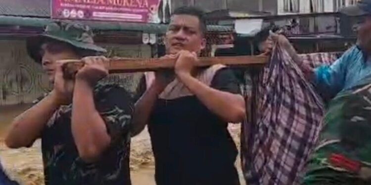 ACEH UTARA – Tim gabungan TNI–Polri bersama warga setempat berhasil mengevakuasi dua jenazah korban banjir bandang di Desa Nibong, Kecamatan Syamtalira Bayu, Kabupaten Aceh Utara, Kamis (27/11/2025). Proses evakuasi berlangsung dramatis karena derasnya arus air serta kondisi medan yang sulit diakses.