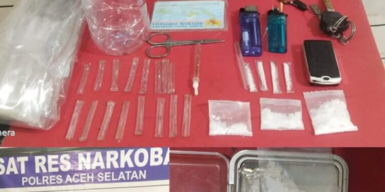 Tapaktuan – Sebagai wujud dukungan terhadap Program Asta Cita Presiden Republik Indonesia tentang pemberantasan peredaran Narkoba, Satuan Reserse (Satres) Narkoba Polres Aceh Selatan Polda Aceh kembali berhasil mengamankan seorang pria berinisial EZ (35) petani warga Kluet Selatan, yang diduga sebagai pelaku Tindak Pidana narkotika jenis sabu. Dari tangan terduga pelaku, Petugas mendapati 7(tuju) paket sabu dengan berat Brutto 6,53 (enam koma limapuluh tiga) gram.