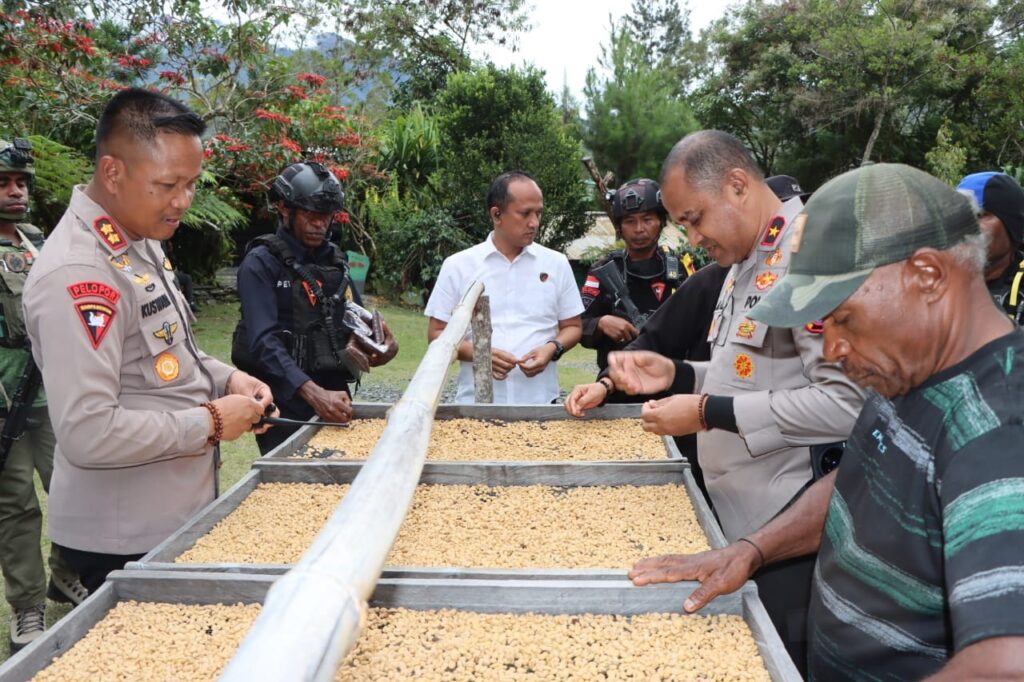 Puncak Jaya. Kapolda Papua Tengah, Brigjen Pol. Alfred Papare, S.I.K didampingi Forkopimda mengunjungi langsung perkebunan kopi milik Bapak Yotimus Wonda yang berada di Kampung Muliambut. Sabtu (15/2/25)