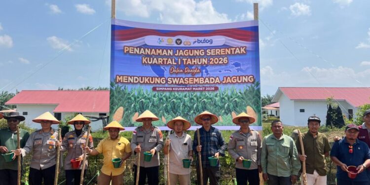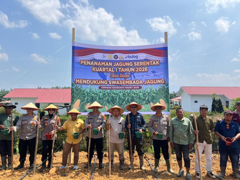 Aceh Utara – Polres Lhokseumawe melaksanakan kegiatan penanaman jagung serentak Kuartal I Tahun 2026 dalam rangka mendukung program swasembada jagung nasional, Sabtu (7/3/2026). Kegiatan tersebut berlangsung di lahan Hak Guna Usaha (HGU) PT Satya Agung, Desa Meunasah Dayah, Kecamatan Simpang Keuramat, Kabupaten Aceh Utara.