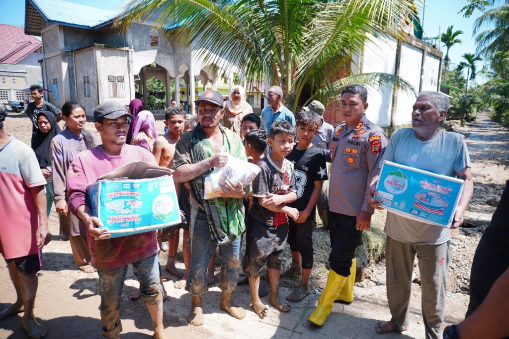 ACEH UTARA – Di tengah kondisi banjir yang belum surut, Kapolres Lhokseumawe AKBP Dr. Ahzan., S.H., S.I.K., M.S.M., M.H turun langsung menyambangi warga terdampak di Desa Kuta Meuligo, Kecamatan Sawang, Aceh Utara, pada sabtu siang (29/11/2025). Kedatangan Kapolres disambut haru oleh masyarakat yang telah empat hari terisolir dampak luapan banjir.