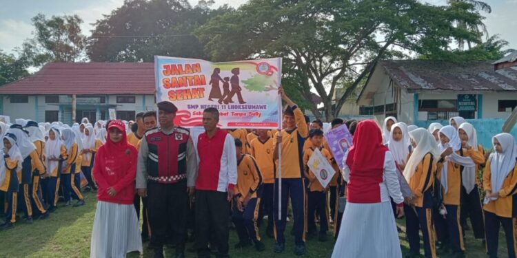Gerak Jalan Santai Pelajar SMP Negeri 11 Lhokseumawe Meriah, Polisi Lakukan Pengamanan Ketat