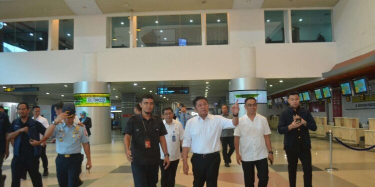 Palembang: Gubernur Sumatera Selatan (Sumsel), Herman Deru, meninjau langsung kesiapan Bandara Sultan Mahmud Badaruddin (SMB) II Palembang untuk kembali membuka penerbangan internasional, Rabu (30/4/2025).