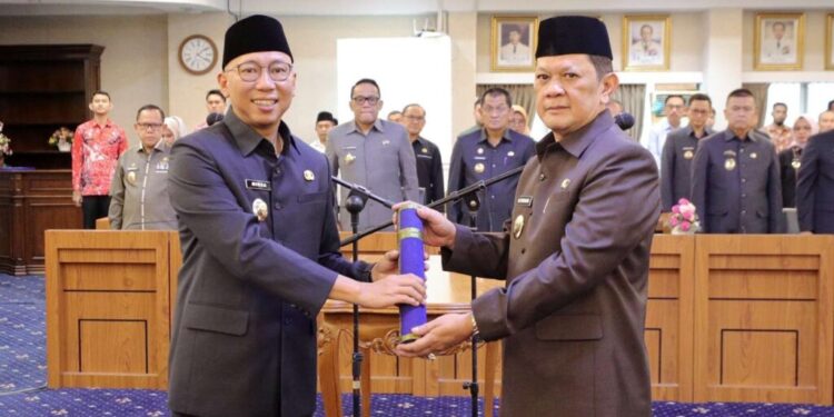 BANDAR LAMPUNG-Gubernur Lampung, Rahmat Mirzani Djausal resmi melantik Muhammad Firsada sebagai Pejabat (Pj) Sekretaris Daerah Provinsi (Sekdaprov) Lampung. Pelantikan berlangsung di Ruang Rapat Utama, Kantor Gubernur Lampung, Bandarlampung, Kamis (20/3/2025).