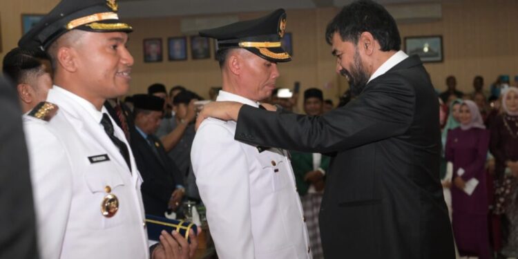 Blangpidie, Gubernur Aceh, Muzakir Manaf, melantik Bupati dan Wakil Bupati Aceh Barat Daya (Abdya) periode 2025-2030, Safaruddin dan Zaman Akli, di Kantor DPRK Abdya, Minggu (16/2/2025) malam.