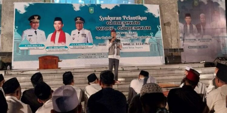 Kemudian tampak juga, Kapolda Riau Irjen Pol Mohammad Iqbal, dan jajaran forkopimda. Agenda ini juga diisi dengan tausiah Ustaz Abdul Somad (UAS).