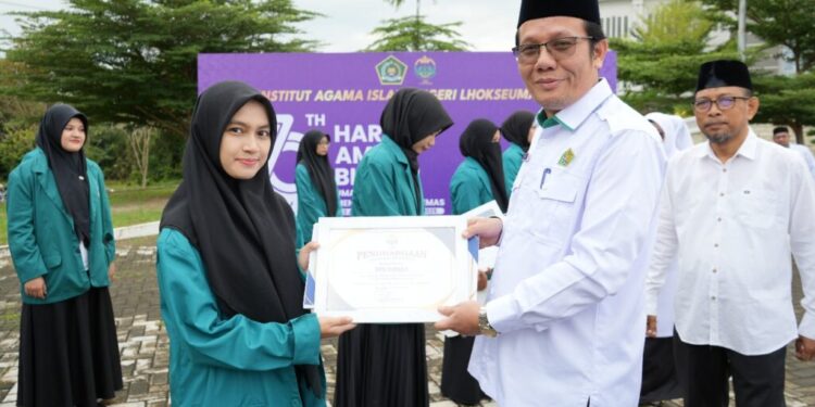 Dalam rangkaian acara, Rektor IAIN Lhokseumawe, Prof. Dr. Danial, M.Ag., didampingi para Wakil Rektor dan Kepala Biro, memberikan penghargaan kepada 26 mahasiswa berprestasi di tingkat nasional dan internasional. Penghargaan ini menjadi bentuk apresiasi atas dedikasi dan prestasi yang telah diraih para mahasiswa, yang turut mengharumkan nama institusi.