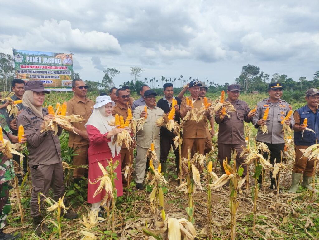 Tambah kapolsek, panen perdana jagung hibrida tersebut secara simbolis dilakukan oleh Pj Bupati Aceh Utara.