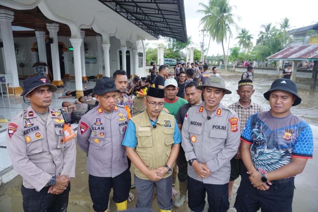Sementara itu, personel Polres Lhokseumawe bersama BKO Brimobda Kaltim tampak bahu-membahu membersihkan endapan lumpur di dalam dan sekitar Masjid Syuhada. Upaya tersebut dilakukan agar masjid kembali bersih dan dapat segera digunakan masyarakat untuk melaksanakan ibadah.