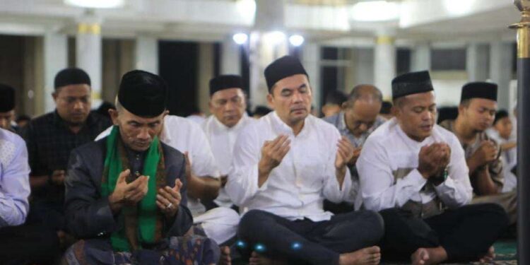Suasana teduh menyelimuti, membuat setiap yang hadir larut dalam kekhusyukan. Wali Kota Lhokseumawe, Dr. Sayuti Abubakar, hadir bersama unsur Forkopimda, pimpinan DPRK, pejabat eselon, serta ASN Pemko Lhokseumawe yang datang dengan niat tulus berbaur bersama masyarakat.