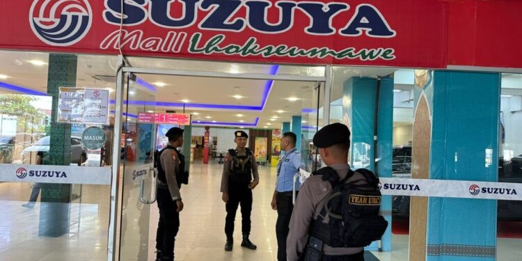 LHOKSEUMAWE – Tim Unit Reaksi Cepat (URC) Sat Samapta Polres Lhokseumawe melaksanakan patroli di pusat perbelanjaan di Kota Lhokseumawe pada Hari Raya Idul Adha 1444 Hijriah, Kamis (29/6/2023) pagi.