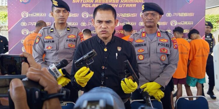 ACEH UTARA – Dua pucuk senjata api yang disita oleh Satuan Reserse Kriminal (Sat Reskrim) Polres Aceh Utara dalam kasus penembakan terhadap anggota Sat Resnarkoba, dipastikan dalam kondisi aktif. Hasil pemeriksaan laboratorium forensik juga mengonfirmasi bahwa salah satu senjata tersebut menjadi sumber tembakan yang mengenai korban dalam insiden di Aceh Timur, April 2025 lalu.