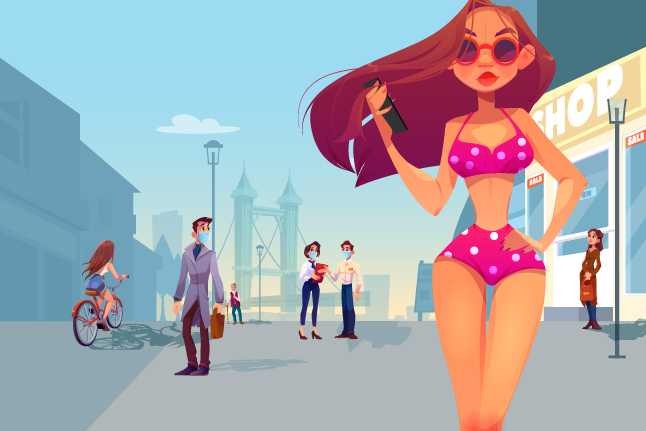 Misalnya, di Italia, beberapa kota seperti Sorrento, Rapallo, dan Praia a Mare telah memberlakukan aturan denda bagi turis yang berjalan-jalan dengan bikini di kota. Denda ini dapat mencapai jumlah yang cukup besar, seperti €500 atau sekitar Rp 8 juta di Sorrento.