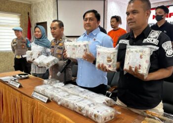 Pekanbaru - Satresnarkoba Polresta Pekanbaru berhasil menggagalkan peredaran besar narkotika jenis sabu lebih kurang 20 kilogram, serta turut mengamankan dua...