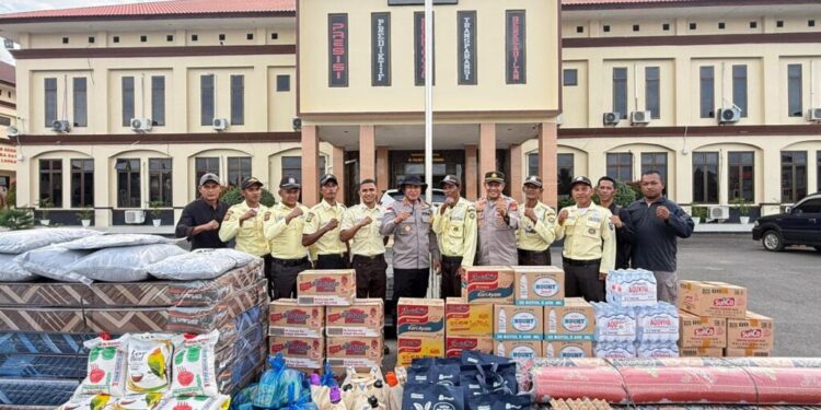 Lhokseumawe – Suasana haru menyelimuti halaman Mapolres Lhokseumawe, Selasa sore (20/1/2026), saat Kapolres Lhokseumawe AKBP Dr. Ahzan, S.H., S.I.K., M.S.M., M.H. menyerahkan bantuan sosial kepada sejumlah Satuan Pengamanan (Satpam) yang menjadi korban bencana banjir. Beberapa di antaranya kehilangan tempat tinggal setelah rumah mereka terseret derasnya arus banjir.