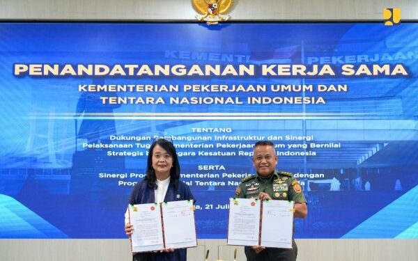 Kerja sama ini diwujudkan melalui penandatanganan Memorandum of Understanding (MoU) antara Menteri PU Dody Hanggodo diwakili Wakil Menteri PU Diana Kusumastuti dengan Panglima TNI Jenderal TNI Agus Subiyanto diwakili Inspektur Jenderal TNI Letnan Jenderal TNI Muhammad Saleh Mustofa di Pendopo Kementerian PU, Senin (21/7/2025).