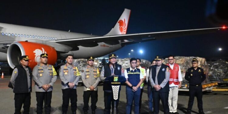 Dalam penerbangan kali ini, bantuan diangkut dengan menggunakan pesawat charter Airbus A330 yang dikoordinasikan oleh Mabes Polri. Kepala Divisi Hubungan Internasional (Kadivhubinter) Polri, Irjen Pol. Krishna Murti, dalam keterangannya di Bandara Internasional Soekarno-Hatta sebelum keberangkatan menjelaskan bahwa bantuan yang dikirimkan antara lain berupa 100 tenda peleton serta bantuan obat dan alat kesehatan yang dikoordinasikan oleh Kementerian Kesehatan.