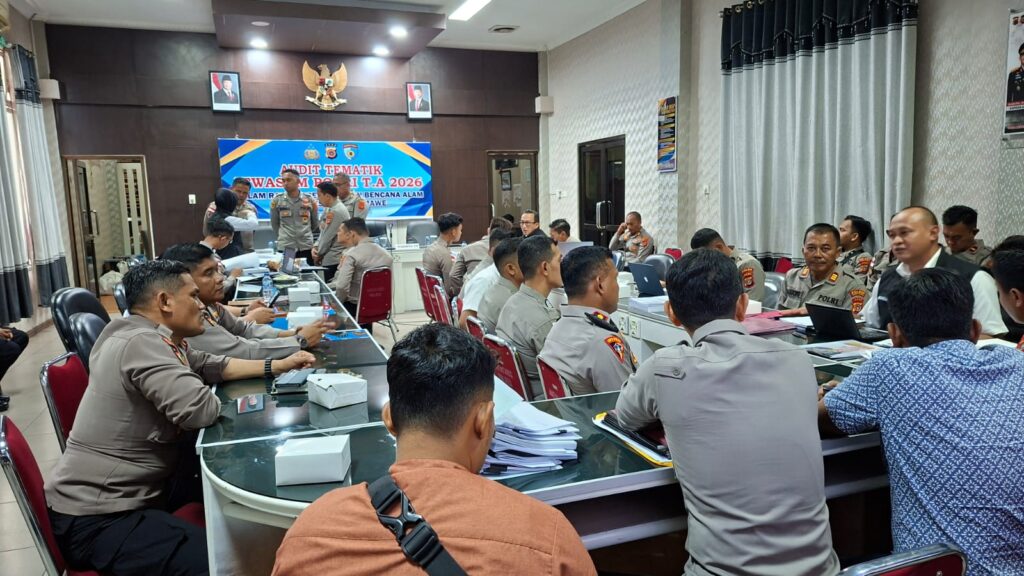 LHOKSEUMAWE – Itwasum Polri melaksanakan Audit Tematik Tahun Anggaran 2026 dalam rangka penanganan bencana alam di Polres Lhokseumawe. Kegiatan tersebut berlangsung di Aula Vidcon Presisi Polres Lhokseumawe, Kamis (22/1/2026) sekitar pukul 14.00 WIB.