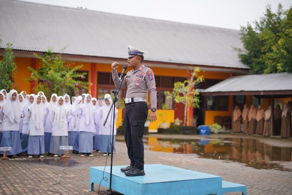 Kapolres Lhokseumawe, AKBP Henki Ismanto, SIK melalui Kasat Lantas, AKP Adek Taufik, SIK mengatakan, personel yang bertindak sebagai pembina upacara di sekolah tersebut, yakni Kanit Kamsel, Bripka Resky Adhitama Nst, S.Sos, MH. Dalam arahannya, personel menyampaikan tentang kenakalan remaja dan dampak yang ditimbulkan.