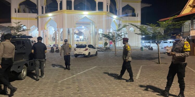 Lhokseumawe – Dalam rangka menjaga situasi keamanan dan ketertiban masyarakat (Sitkamtibmas) selama bulan suci Ramadan, Polres Lhokseumawe melaksanakan patroli terpadu pada saat pelaksanaan ibadah Shalat Tarawih di sejumlah wilayah hukum Polres Lhokseumawe, Jumat (5/3/2026) malam.