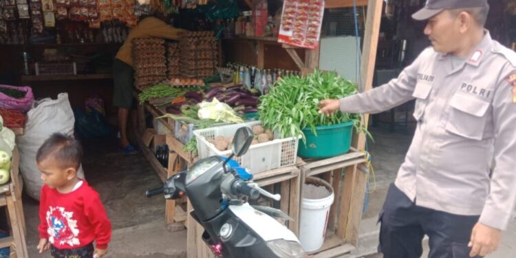 LHOKSEUMAWE – Personel Polsek Dewantara melaksanakan patroli dan mengecek stok sembako di pasar Keude Krueng Geukueh, Kecamatan Dewantara, Aceh Utara, wilayah hukum Polres Lhokseumawe, Rabu (10/5/2023).