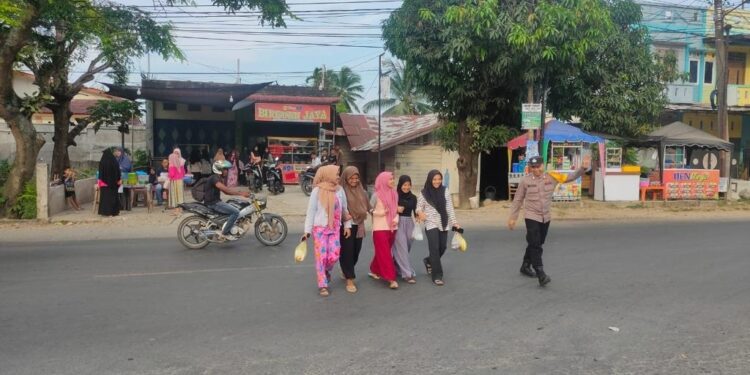 LHOKSEUMAWE – Personel Polsek Muara Dua, Polres Lhokseumawe melakukan pengaturan lalu lintas di dua titik menjelang waktu berbuka puasa, Kamis (23/3/2023) sore