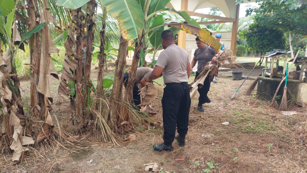 Kegiatan ini bertujuan untuk menciptakan lingkungan kerja yang bersih, rapi, dan nyaman. Kegiatan korve meliputi pembersihan halaman Mako, taman, serta area sekitar Mapolsek.