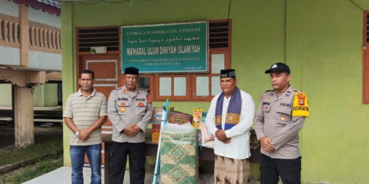 LHOKSEUMAWE – Kepolisian Resor Lhokseumawe Sektor Muara Batu melaksanakan kegiatan Saweu Dayah di Dayah Rauhul Ma’arif (RAMA) Desa Kambam dan Dayah Ma’hadal Ulum Diniah Islamiah Desa Reuleut Barat, Kecamatan Muara Batu, Jumat (8/3/2024) sekitar pukul 14.30 WIB.