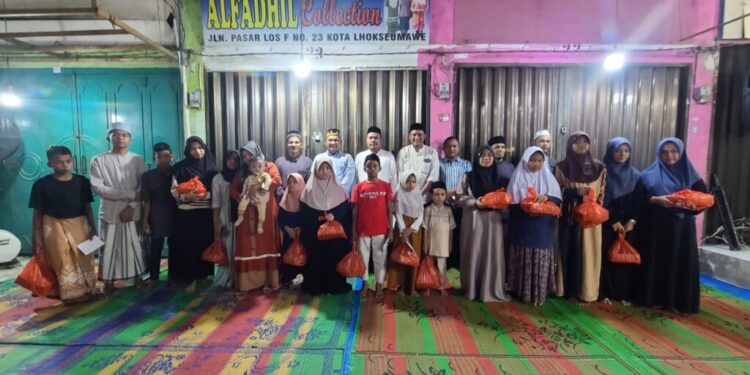 LHOKSEUMAWE – Pimpinan Klinik Vinca Rosea Lhokseumawe, Azhari menyantuni anak yatim di Lingkungan I, Gampong Kota Lhokseumawe, Kecamatan Banda Sakti, Rabu (6/3/2024) malam.